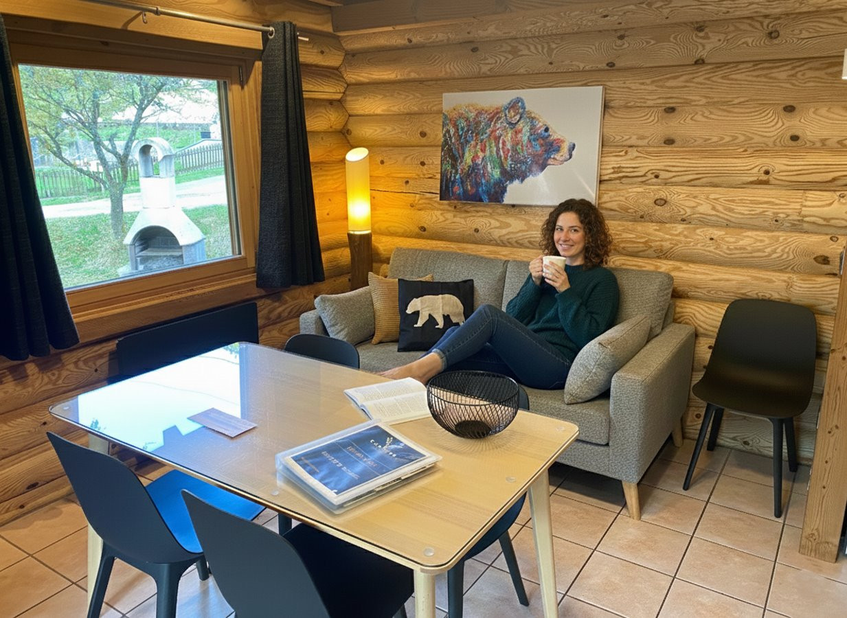 Ce charmant chalet en rondin de 40 m², situé sur un terrain plat et facilement accessible à 750 mètres d’altitude est conçu pour accueillir de 2 à 5 personnes. Il est décoré sur le thème des ours noirs et offre une ambiance relaxante et chaleureuse. Vous disposerez d’un RDC avec une chambre pour 2 personnes et d’une mezzanine accueillant 3 lits simples. Il est donc bien adapté aux familles avec enfants. Vous pourrez profiter également d’un barbecue sur le côté du chalet et d’une terrasse aménagée.