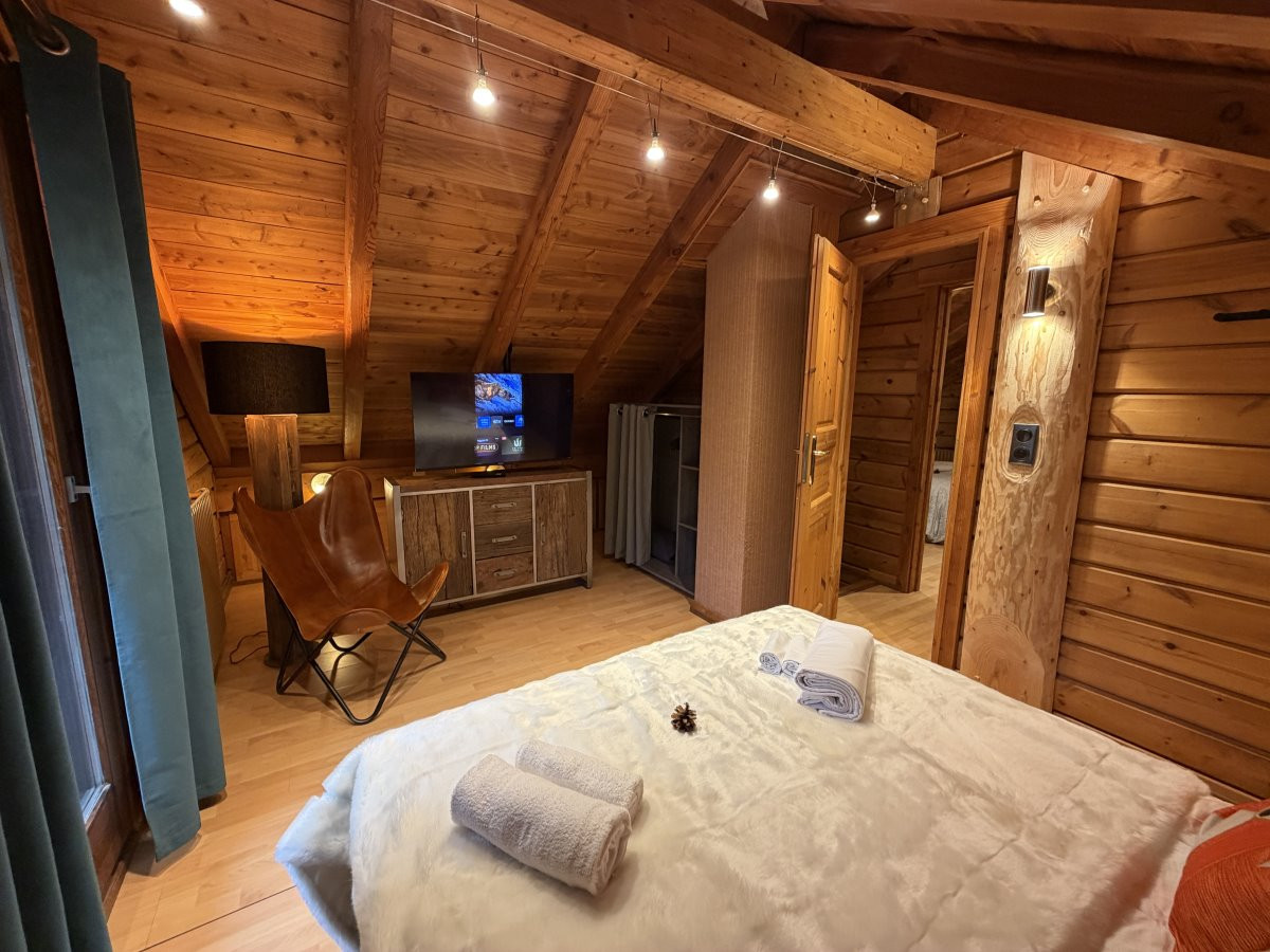 • Chambres : Une chambre équipée d'un lit double 140 cm x 190 cm et Smart TV connectée, une mezzanine comportant un lit simple 90 cm x 190 cm